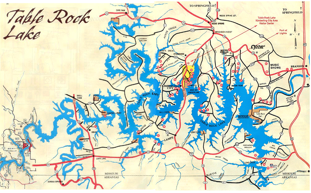 Big Cedar on the Long Creek arm is the best "resort" there & is close to Kimberling & you can find good water that way too. They have a killer breakfast buffet which explains the extra weight I put on over the summer.